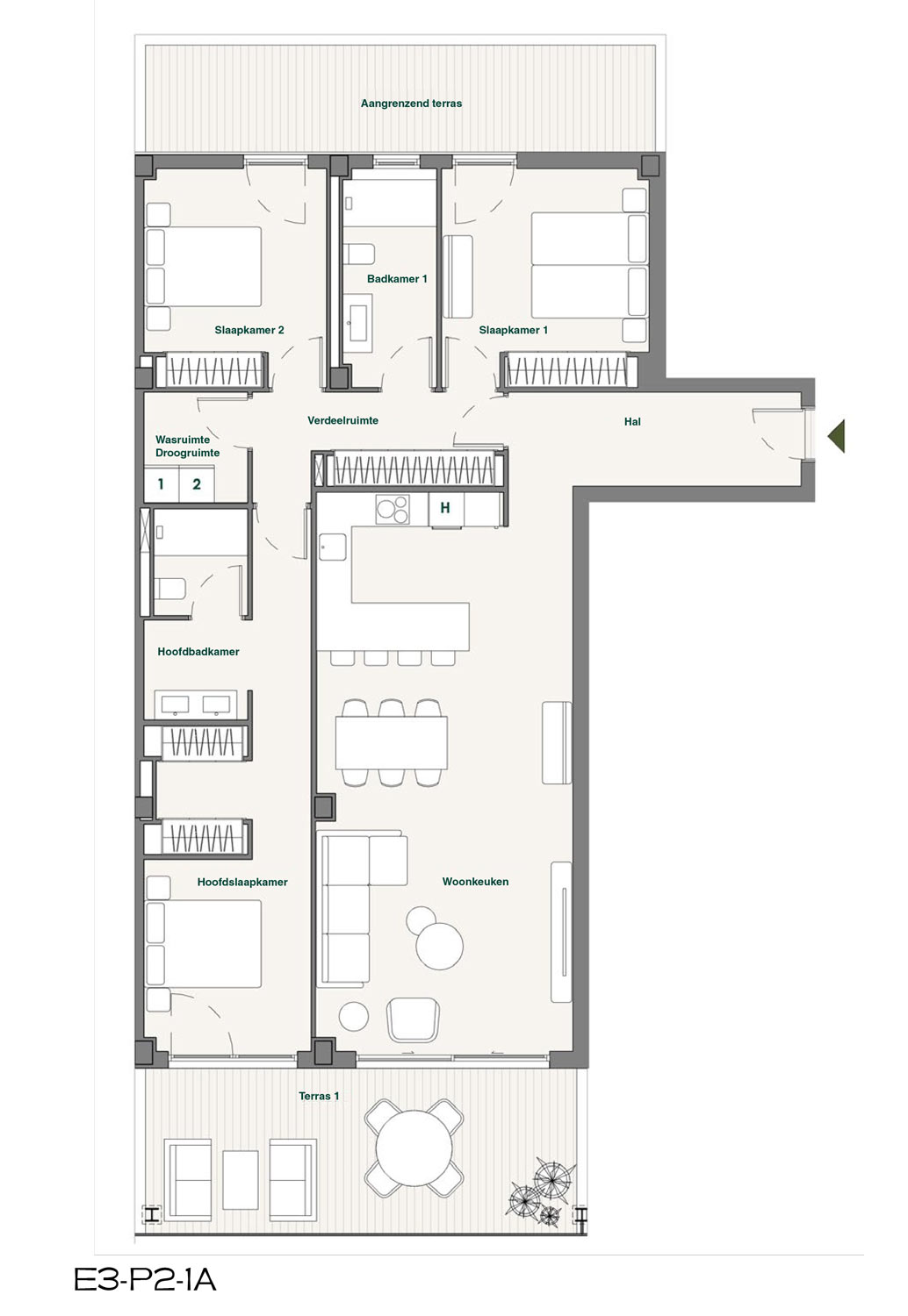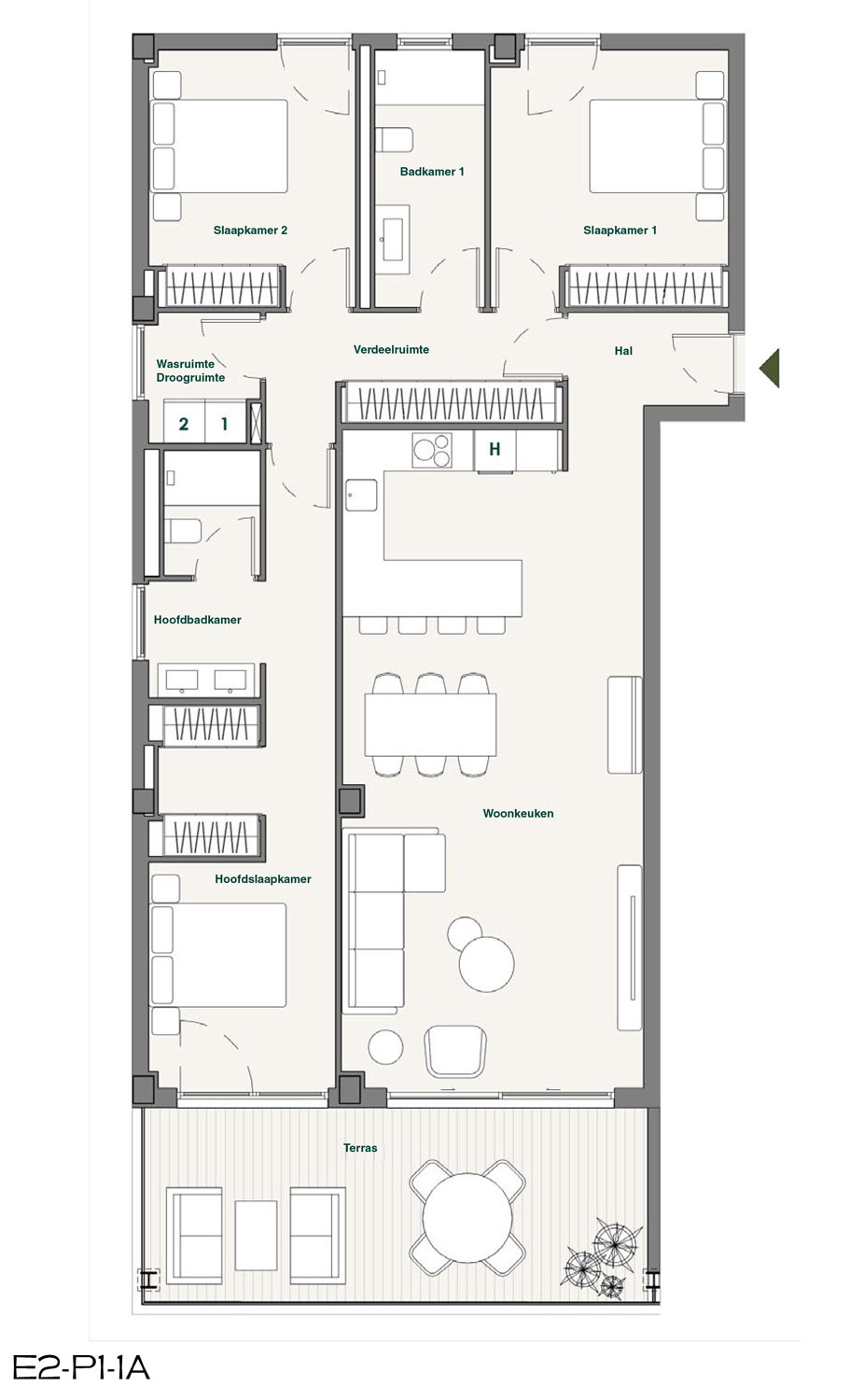 Elke woning is ontworpen met in gedachten ruimte, licht en comfort. Open woon-keukenruimtes – het echte hart van het dagelijks leven – lopen op natuurlijke wijze over in terrassen die zich uitstrekken tot aan de horizon. De hoofdslaapkamers met en-suite badkamers zorgen voor privacy, terwijl de overige ruimtes een functionele indeling hebben en zijn voorzien van doordachte details, zoals wasruimtes.